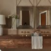 chimenea, baño con luz y flores naturales, hechas por Sabine, la madre de Samantha.